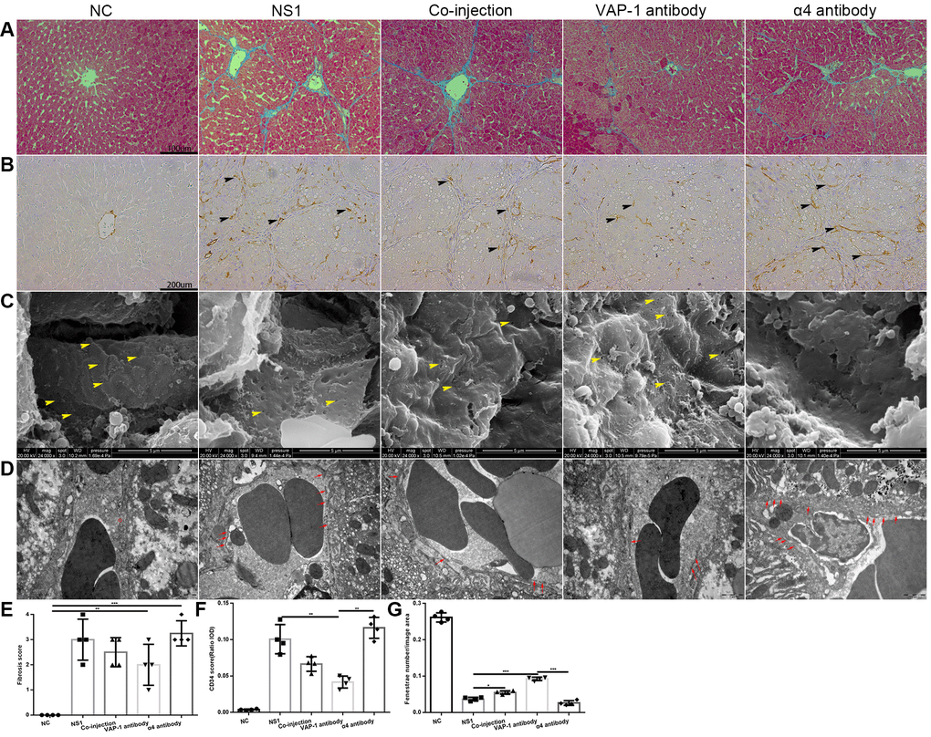 Taken together, these results suggested that preventing the adhesion of Th cells to LSECs affects the progression of hepatic capillarization. Moreover, inhibiting Th2 lymphocyte adhesion to LSECs can reduce or even reverse the extent of liver fibrosis to some extent.
