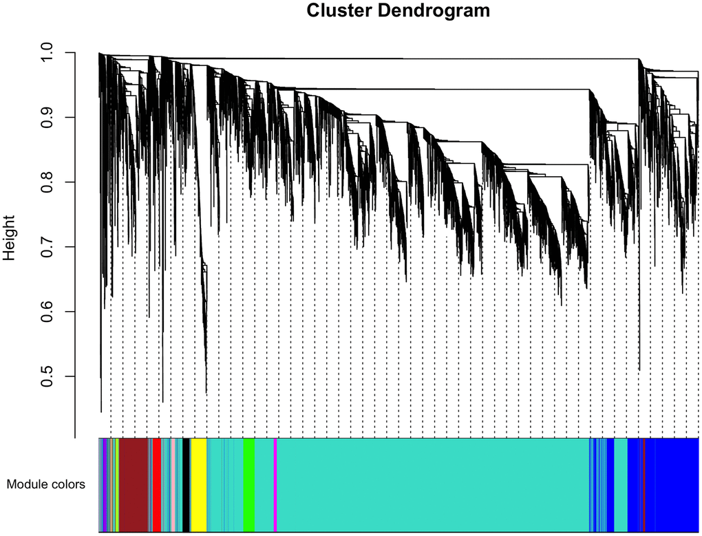 First, a weighted correlation network was generated by constructing a matrix of pairwise correlations between all pairs of genes chosen according to variance. Comparability was assessed by correlation analysis of connectivity and average gene expression. Connectivity was assessed with the function of soft connectivity in the software R with WGCNA package [42], which was also used to construct the WGCNA in this study. Cluster analysis using the Flash Cluster package in R was carried out. A module was defined as group of genes that show similar patterns of connection strengths with all the other genes in the network, and these groups of gens often have similar functions. Modules were determined using the cut-tree Hybrid function in the software R with Dynamic Tree Cut package.