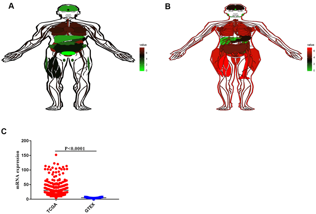 Transcriptomic data of patients with pathologically normal human tissues were downloaded from GTEx website (https://gtexportal.org/home/) in April 2020, which included 9,783 cases of normal human tissues and corresponding general information, which included 621 samples of adipose tissue, 161 samples of adrenal gland, 13 samples of bladder, 595 samples of blood, 753 samples of blood vessel, 102 samples of bone marrow, 1,426 samples of brain, 221 samples of breast, 11 samples of cervix uteri, 384 samples of colon, 805 samples of esophagus, 7 samples of fallopian tube, 493 samples of heart, 38 samples of kidney, 141 samples of liver, 381 samples of lung, 478 samples of muscle, 209 samples of stomach, etc. Inclusion criteria: Cases with known expression levels of VIM, CDH1, S100A4 and EPCAM. Due to the limited clinical information of patients in this database, relevant prognostic detail will be temporarily unavailable.