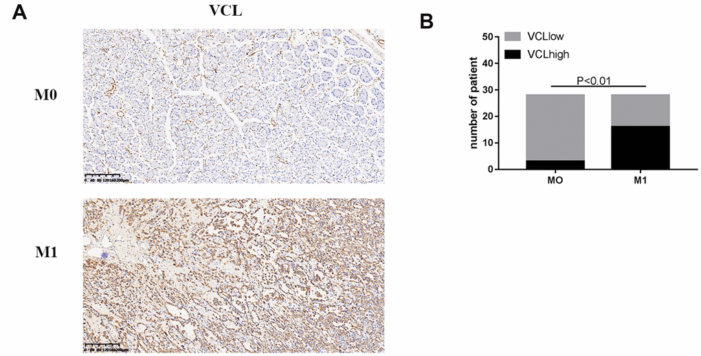Immunohistochemical analysis showed that VCL expression was associated with EMT and distant metastasis in gastric cancer