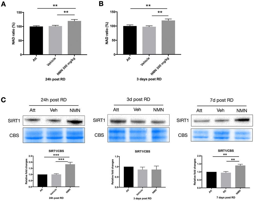 NMN increases NAD+ levels and SIRT1 expression after RD