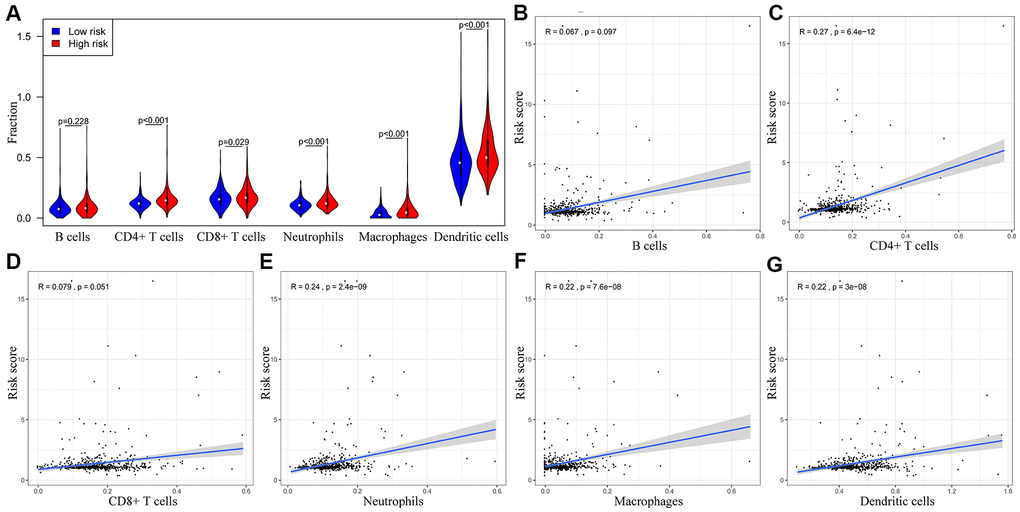 We used the deconvolution algorithm from the TIMER database (https://cistrome.shinyapps.io/timer/) to analyze the association between the prognostic risk-related IRGs and the tumor-infiltration levels of immune cells, such as B cells, CD4+ T cells, CD8+ T cells, macrophages, neutrophils, and dendritic cells [41].