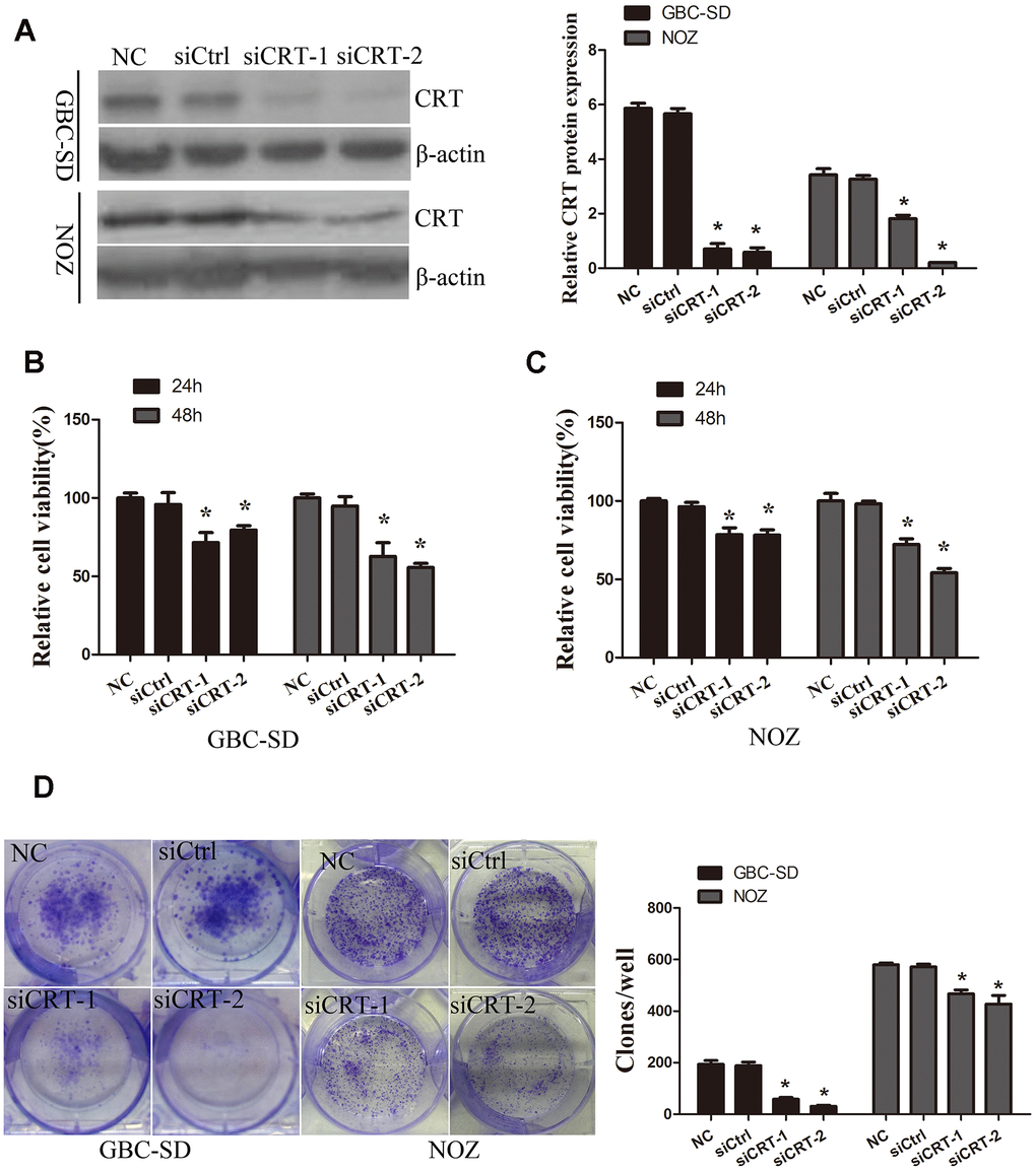 Knockdown of CRT inhibits the proliferation of GBC-SD and NOZ cells