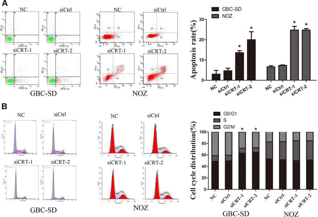 Knockdown of CRT induces cell apoptosis and cell cycle arrest in GBC-SD and NOZ cells