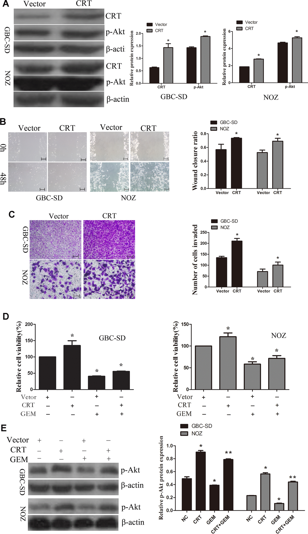 Overexpression of CRT significantly increases cell migration and decreases chemosensitivity of GBC-SD and NOZ cells to GEM through regulation of the PI3K/Akt pathway