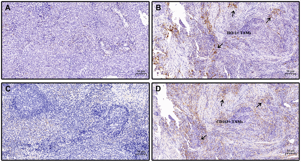 Taken together, our study revealed that overexpression of HO-1 characterized a poor-prognosis NPC subtype. In addition, a significant correlation between the intensities of HO-1 and CD163 in TAMs was found, and HO-1 exhibited a superior ability in predicting OS and PFS compared with CD163. These findings suggested that individualized therapy targeting HO-1 might serve as a promising treatment modality for NPC.