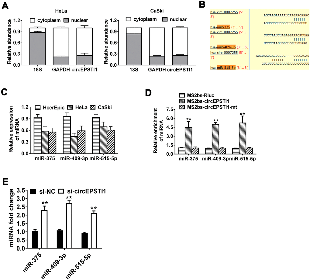 CircEPSTI1 serves as a miRNA sponge for miR-375, miR-409-3P and miR-515-5p