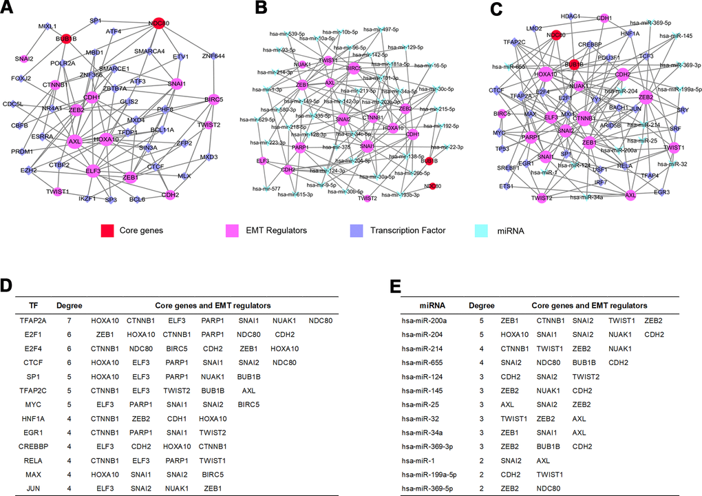 GRN analysis for TF, miRNA, core genes and EMT regulators
