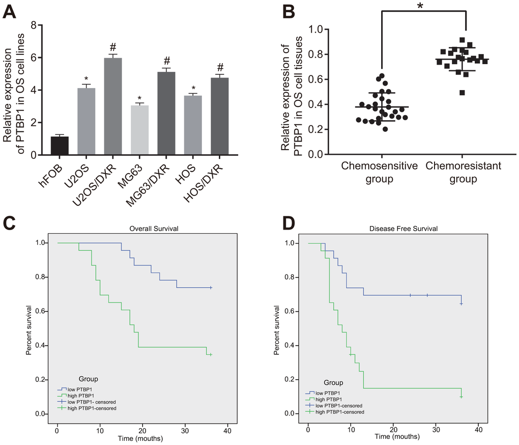 Upregulated PTBP1 was associated with DXR resistance and poor survival in osteosarcoma patients