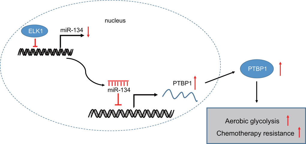 Altogether, the aforementioned findings demonstrated that ELK1 facilitated the chemoresistance of osteosarcoma cells to DXR by enhancing aerobic glycolysis via the miR-134/PTBP1 axis.