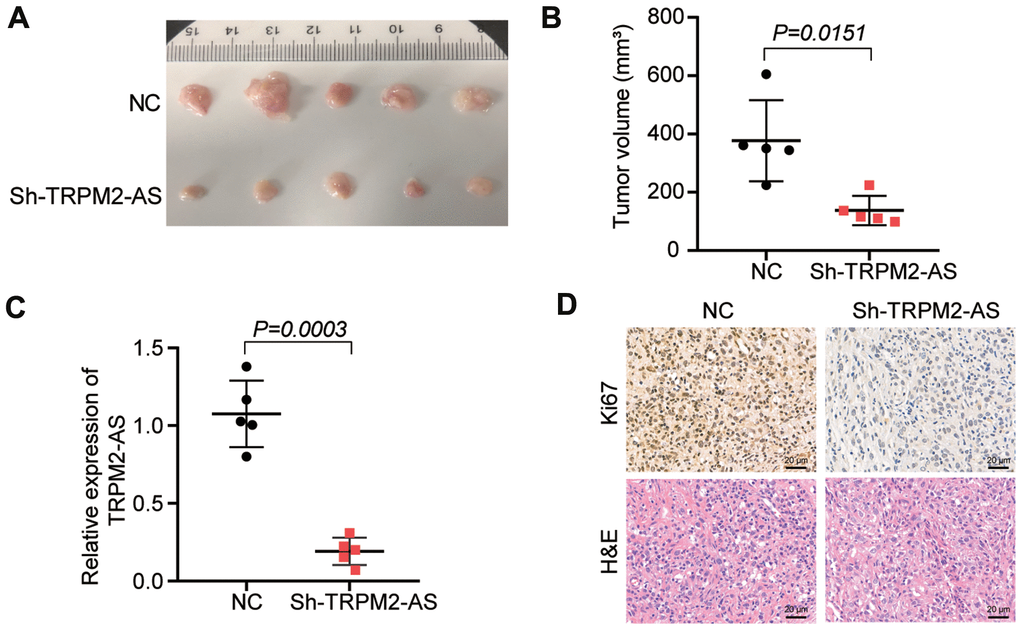 Silencing TRPM2-AS inhibited tumor growth in vivo