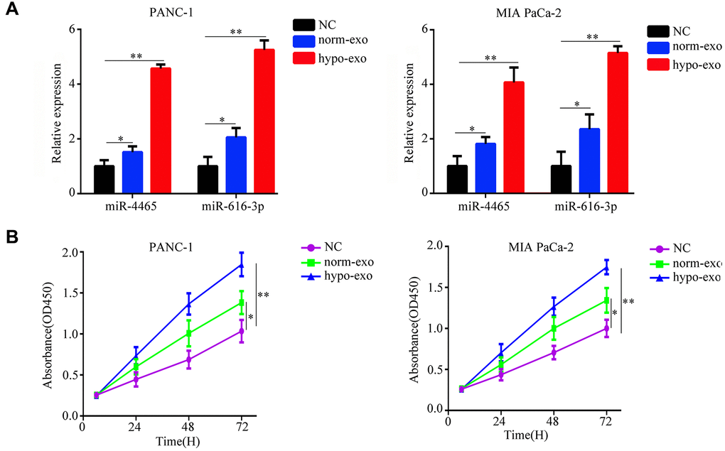 Hypoxic PSC exosome-derived miR-4465 and miR-616-3p promote proliferation and migration of PC cells