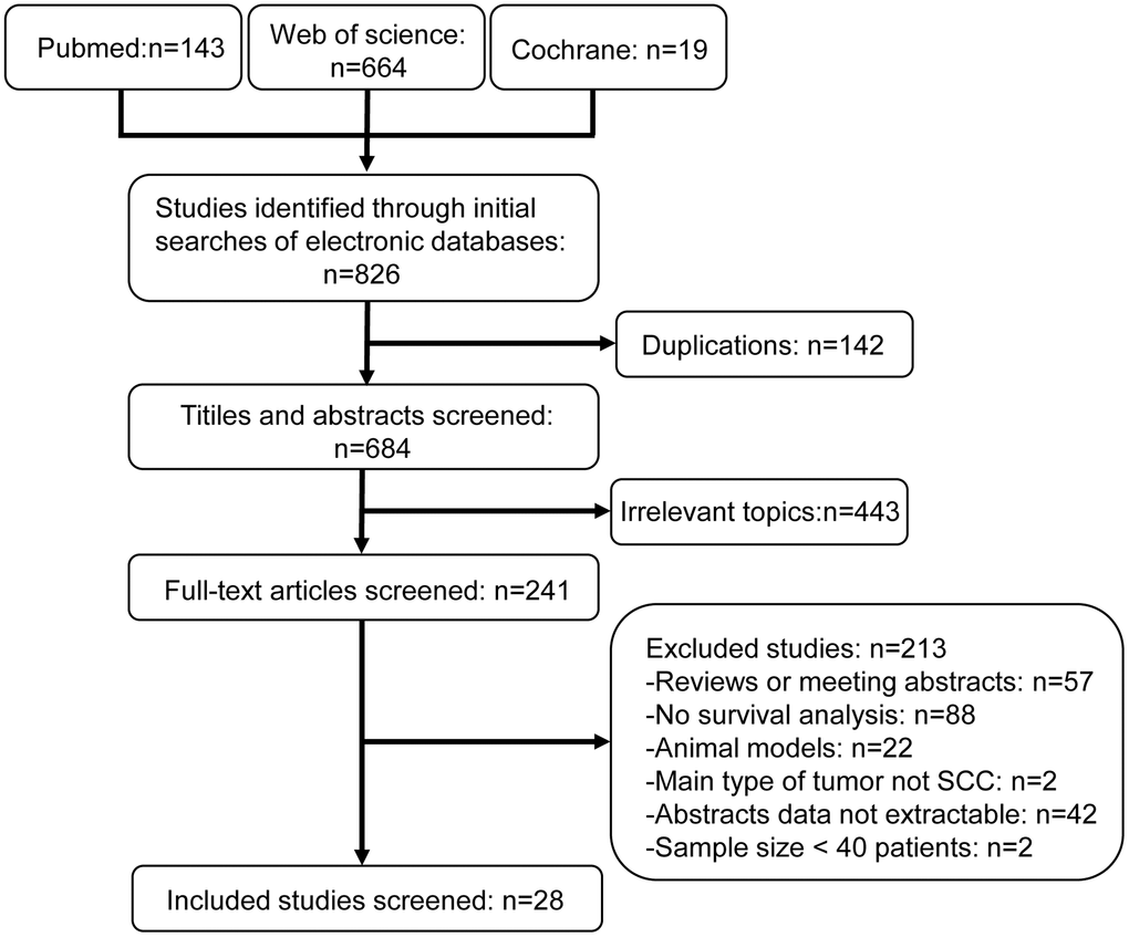 The exclusion criteria were: 1) editorials, reviews, case reports, letters to the editor; 2) animal experimental studies; 3) sample size < 30 samples.
