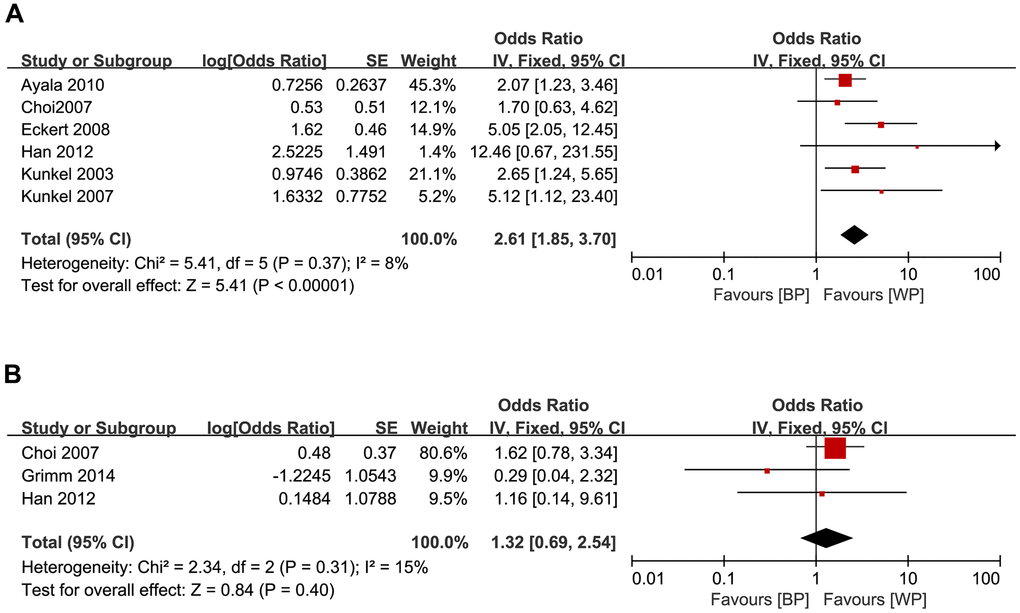 | OSCC | 6 | 506 | 2.33 [1.18, 4.60] | 0.01 | 52 | 0.06 | |