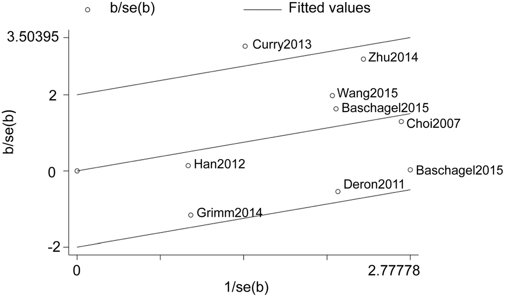 Heterogeneity between studies was evaluated using chi-square test and a P value less than 0.10 was considered as significant heterogeneity. I2 statistic was used to quantify heterogeneity. A random-effects model was used to evaluate studies with heterogeneity, whereas those without heterogeneity were evaluated using the fixed-effects model [57]. Galbraith plot analysis was performed to identify the studies with heterogeneity.
