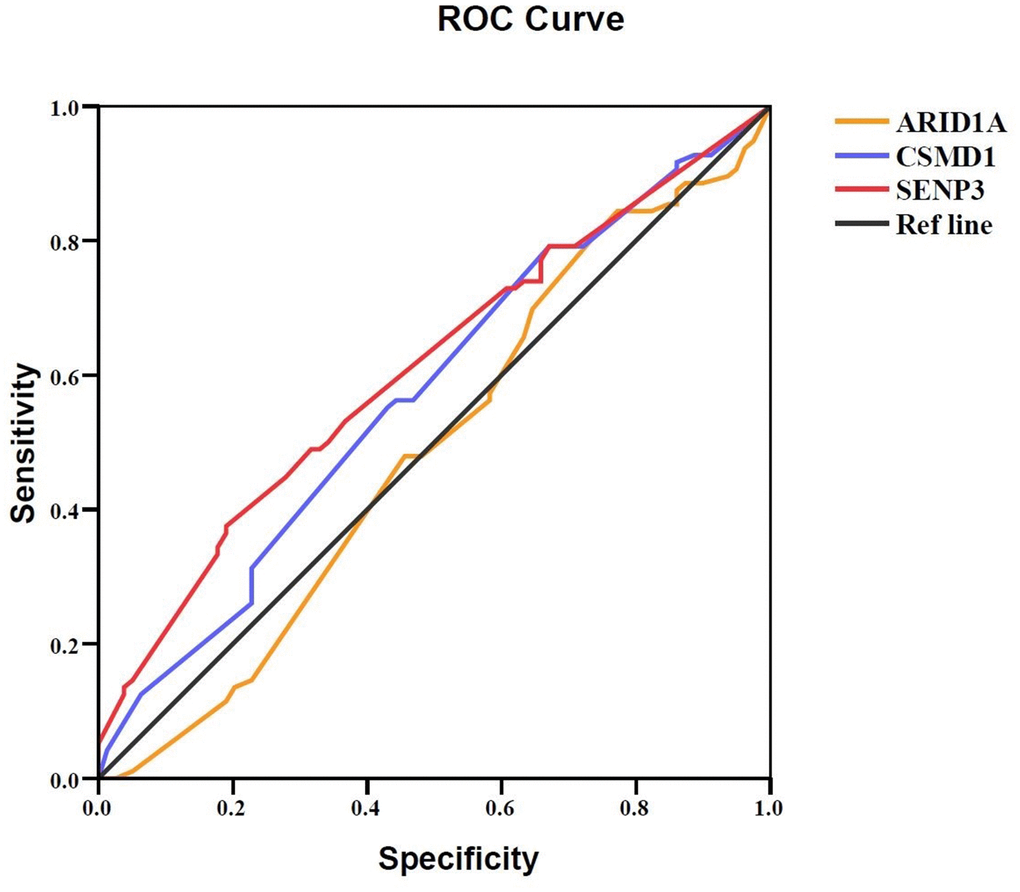Table 5. ROC curve analysis of ARID1A, CSMD1, and SENP3 expression in HCC survival prediction.