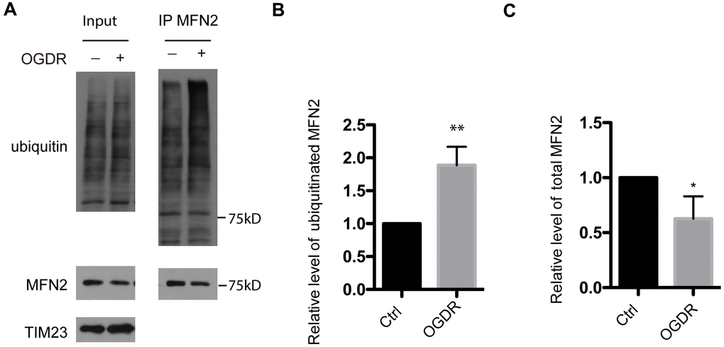 Ubiquitination of MFN2 is increased during early reperfusion after OGD