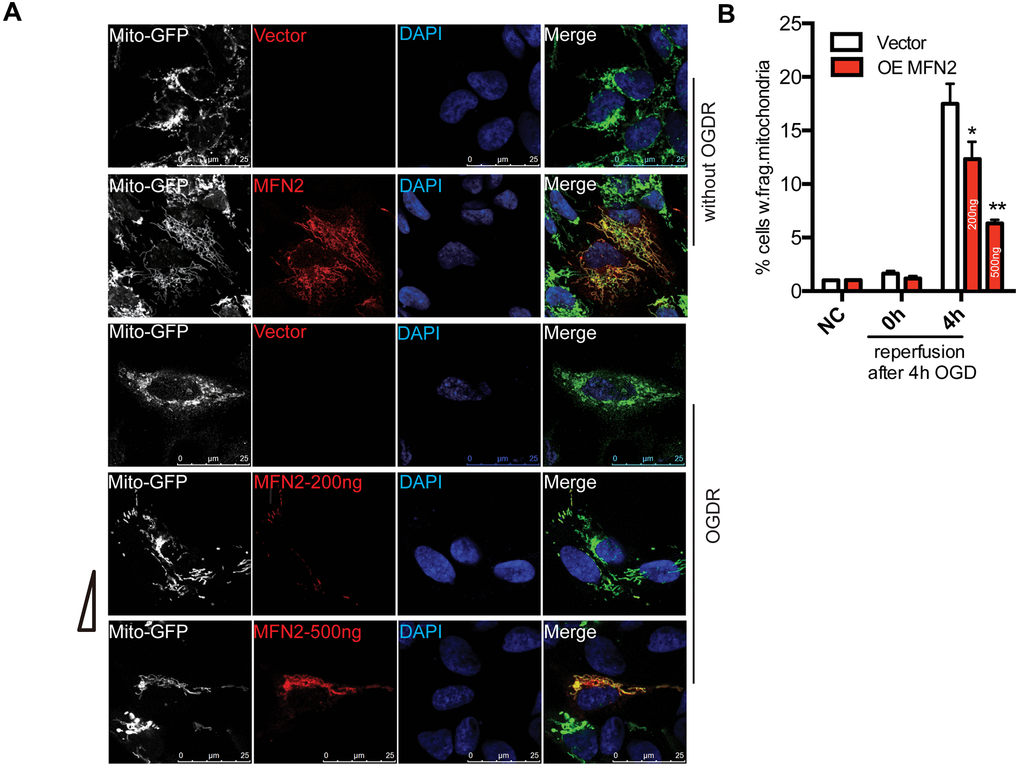 Overexpression of MFN2 protects against OGDR induced mitochondrial fragmentation