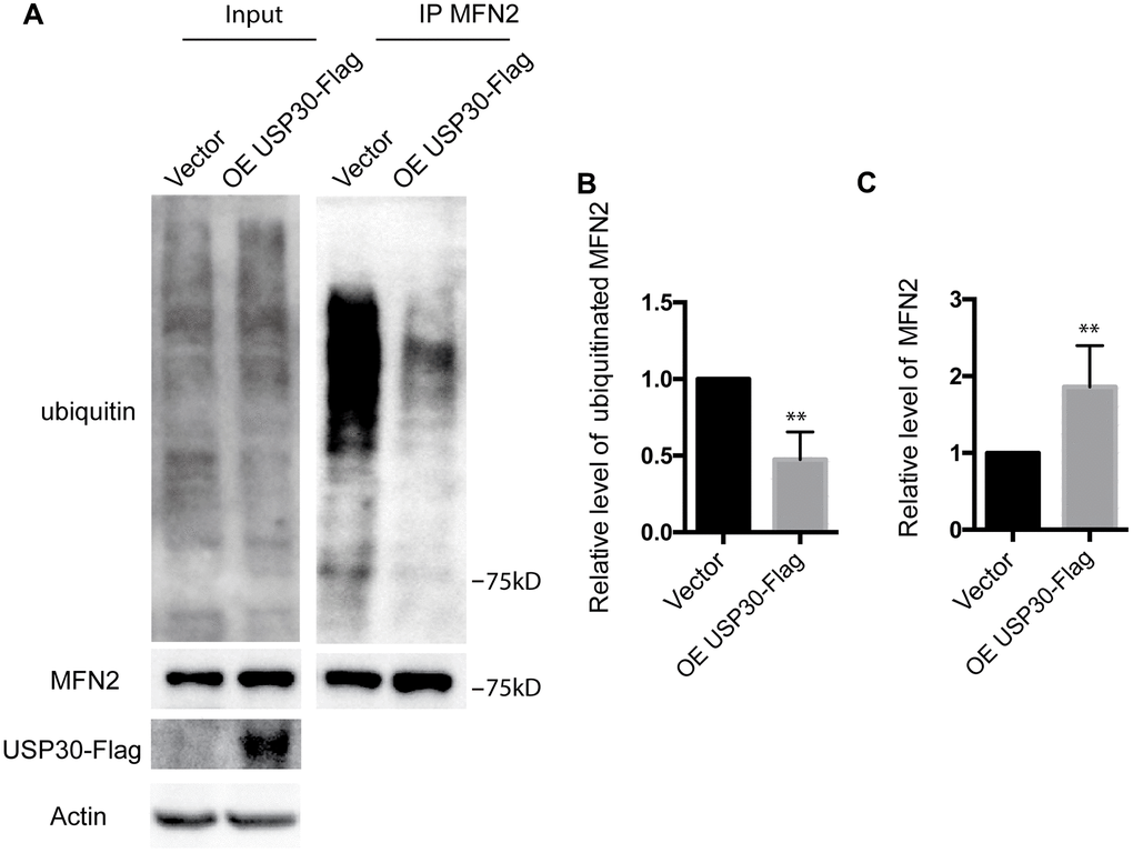 USP30 overexpression inhibits ubiquitination and degradation of MFN2 after OGDR