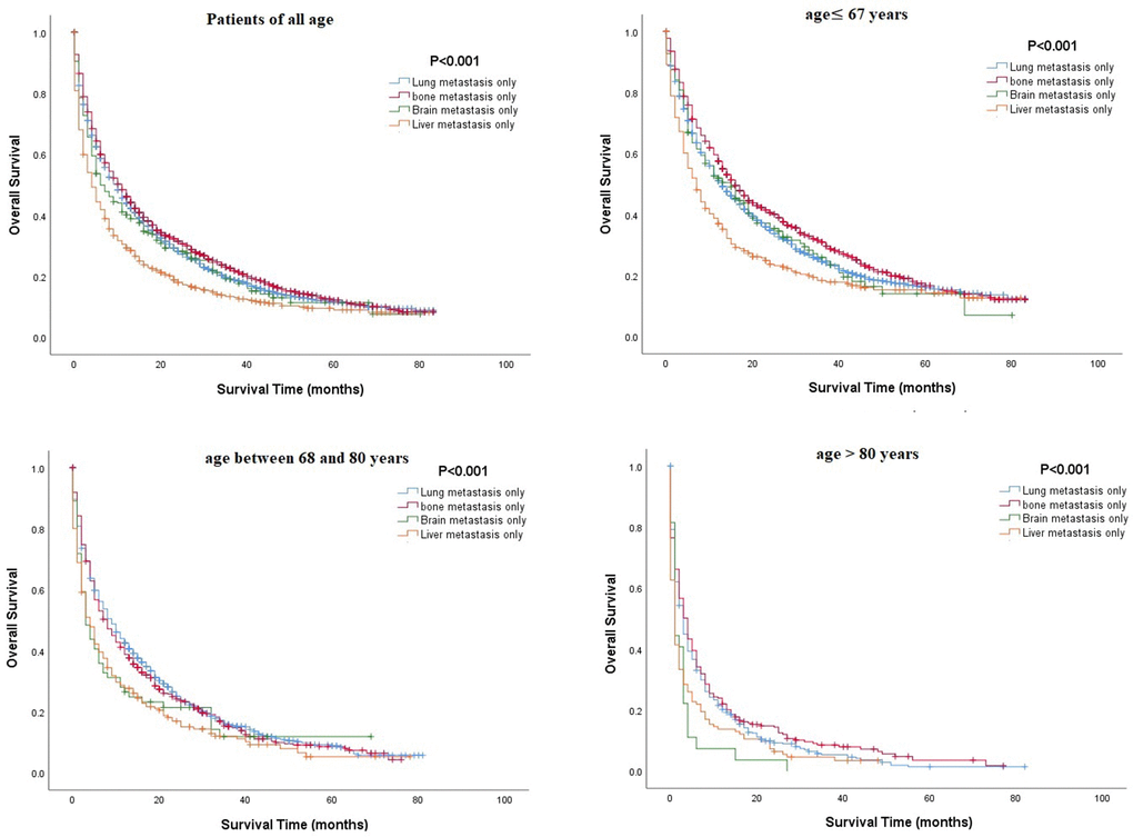 Table 3. Multivariate Cox regression analysis of overall survival (OS) rates of the metastasis by age groups.