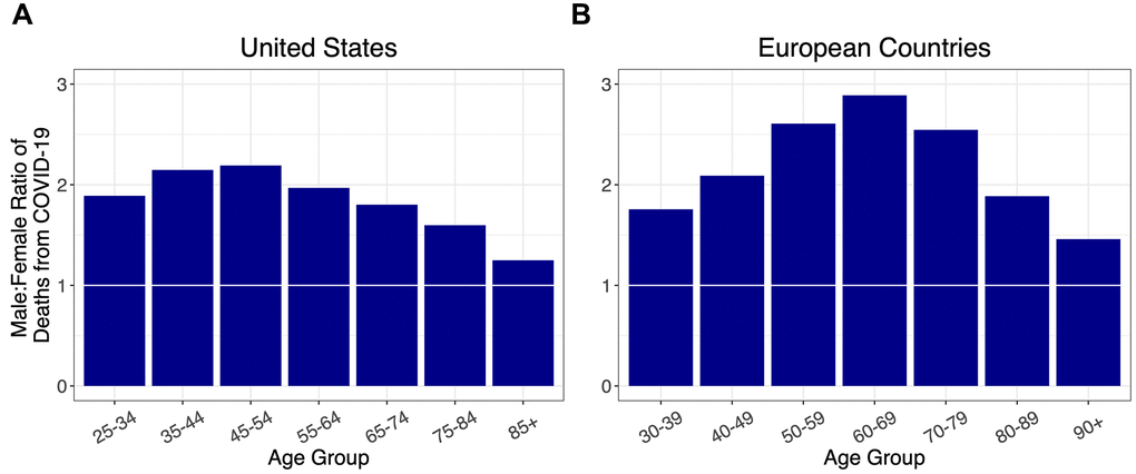 More males than females die from COVID-19, the disease caused by SARS-CoV-2. This was first observed in China, where 64% of COVID-19 deaths occurred in males [1]. As the epidemic spread worldwide, other countries similarly observed a higher percentage of deaths from COVID-19 in males [1]. The higher number of deaths among males is consistent with mortality patterns observed in several major viral epidemics/pandemics of the 20th and 21st centuries, including the Western African Ebola virus epidemic (2013-2016) [2] and the H1N1 Spanish Flu pandemic of 1918 [3]. Adult men also have an overall higher mortality rate than adult women from seasonal influenza based on data in the US between 1997-2007, with some variation depending on age group and underlying conditions [4].