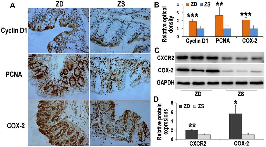 ZD increased the protein levels of CXCR2 and COX-2