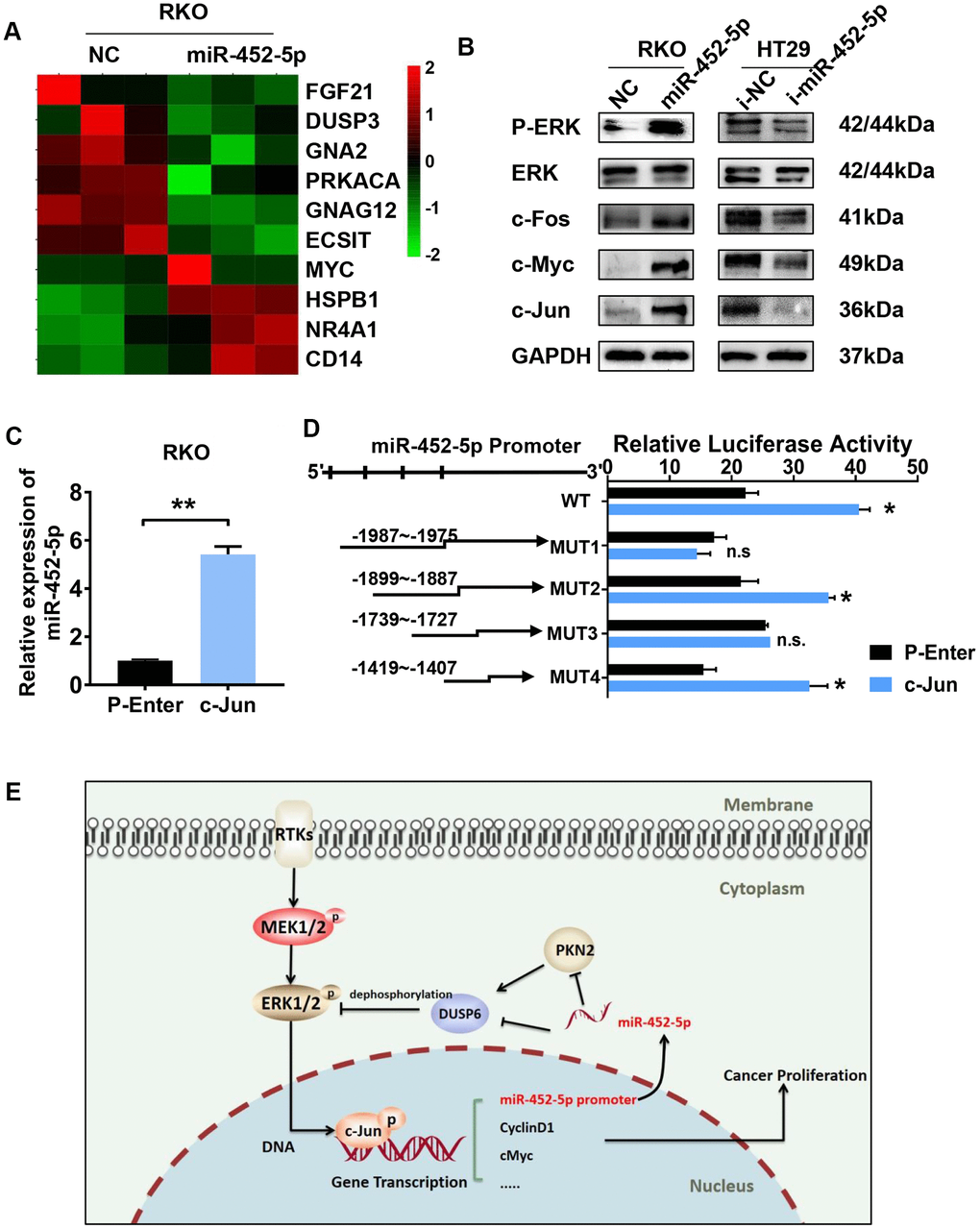 MiR-452-5p activates the ERK/MAPK pathway and is transcriptionally regulated by c-Jun