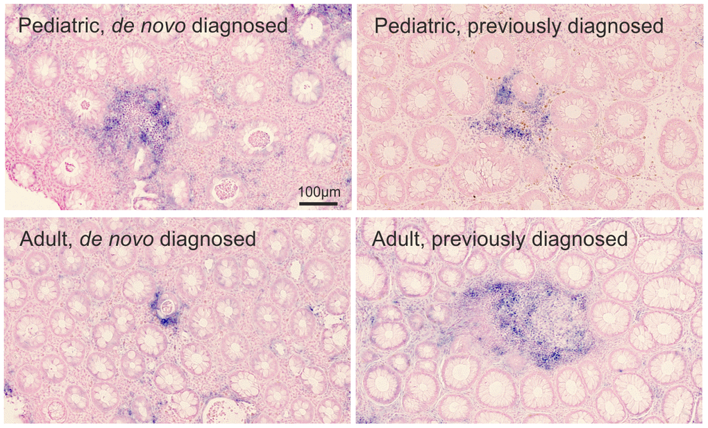 By ISH, we found a focal upregulation of miR-21 in association with inflamed crypts with similar expression patterns in all study groups (Figure 2).