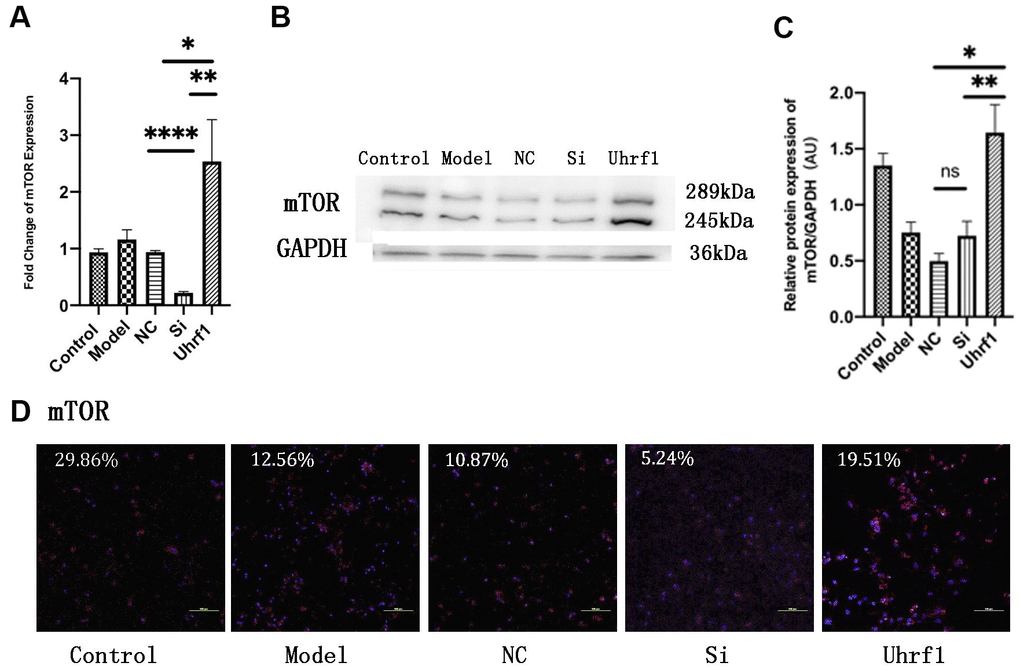 Effect of Uhrf1 on the expression of mTOR during MIRI