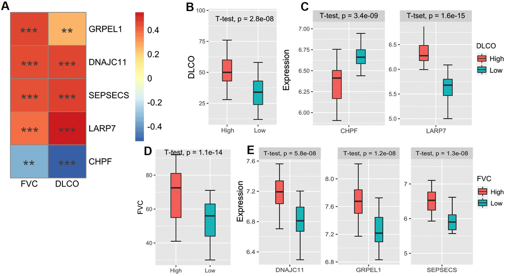| GSE38958 | Peripheral blood mononuclear cells | 60 | GRPEL1/DNAJC11/SEPSECS/LARP7/CHPF | / | / | FVC/DLCO |