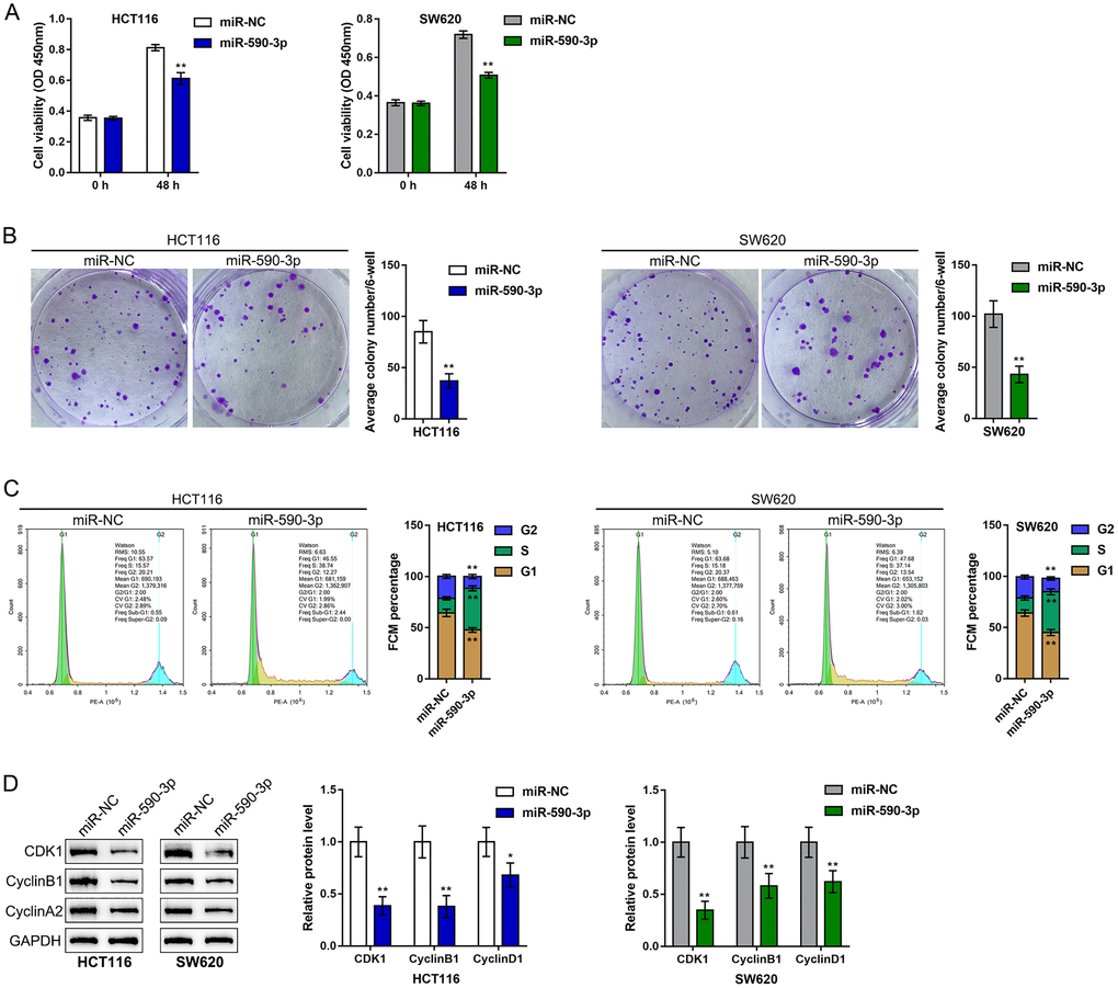 Effects of miR-590-3p on CRC cell proliferation and the cell cycle