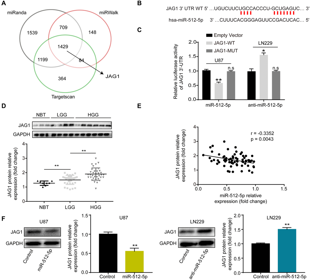 JAG1 mediates the effect of miR-512-5p on GBM cells