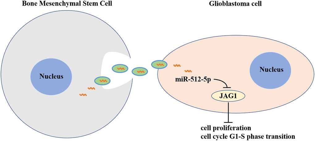 In this context, our study demonstrated that BMSC exosomes can deliver miR-512-5p into GBM cells and inhibit GBM progression by targeting JAG1 (Figure 8). These findings provide insight into the mechanism of molecular therapy for GBM treatment and highlights the potential for BMSC-Exo as a vehicle to transport miR-512-5p into GBM.