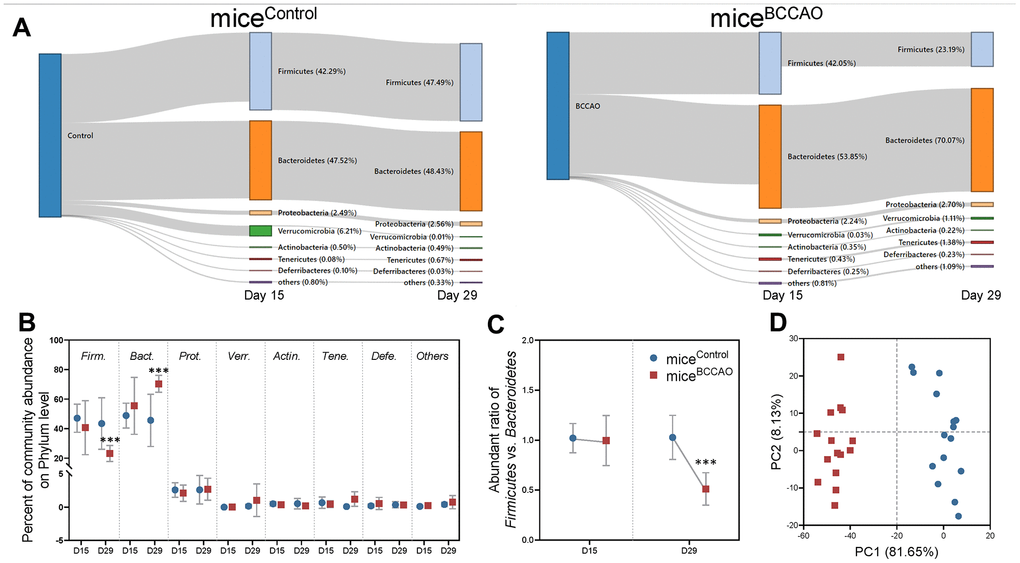The fecal implantation was carried out as described somewhere else with slight modifications [61]. Briefly, BCCAO mice fecal samples were placed on ice after collection and stored at -80° C until processing. The fecal samples of BCCAO mice were organized for colonization by way of pooling equal quantities of fecal material. A total of 100 mg samples was returned to 1 ml of 0.1M sterile PBS. Before centrifugation at 700g for 5 min, the solution was mixed steadily for 10 s by a vortex. The supernatant was accumulated as transplantation material and kept at -80° C.