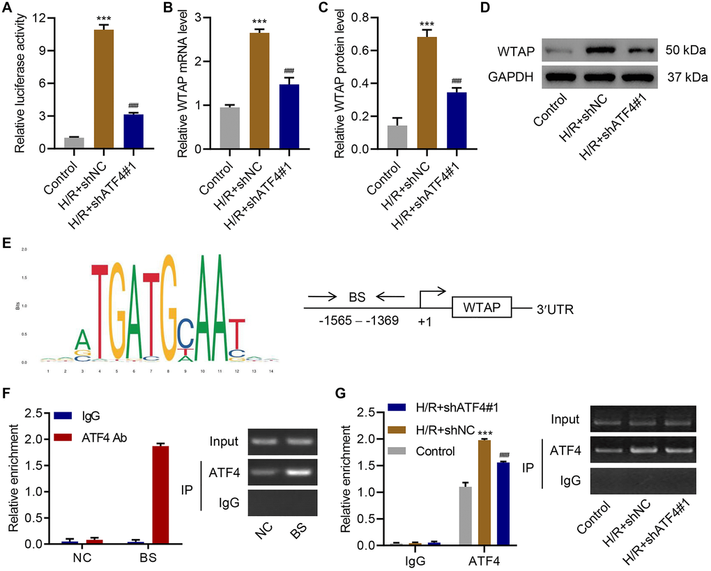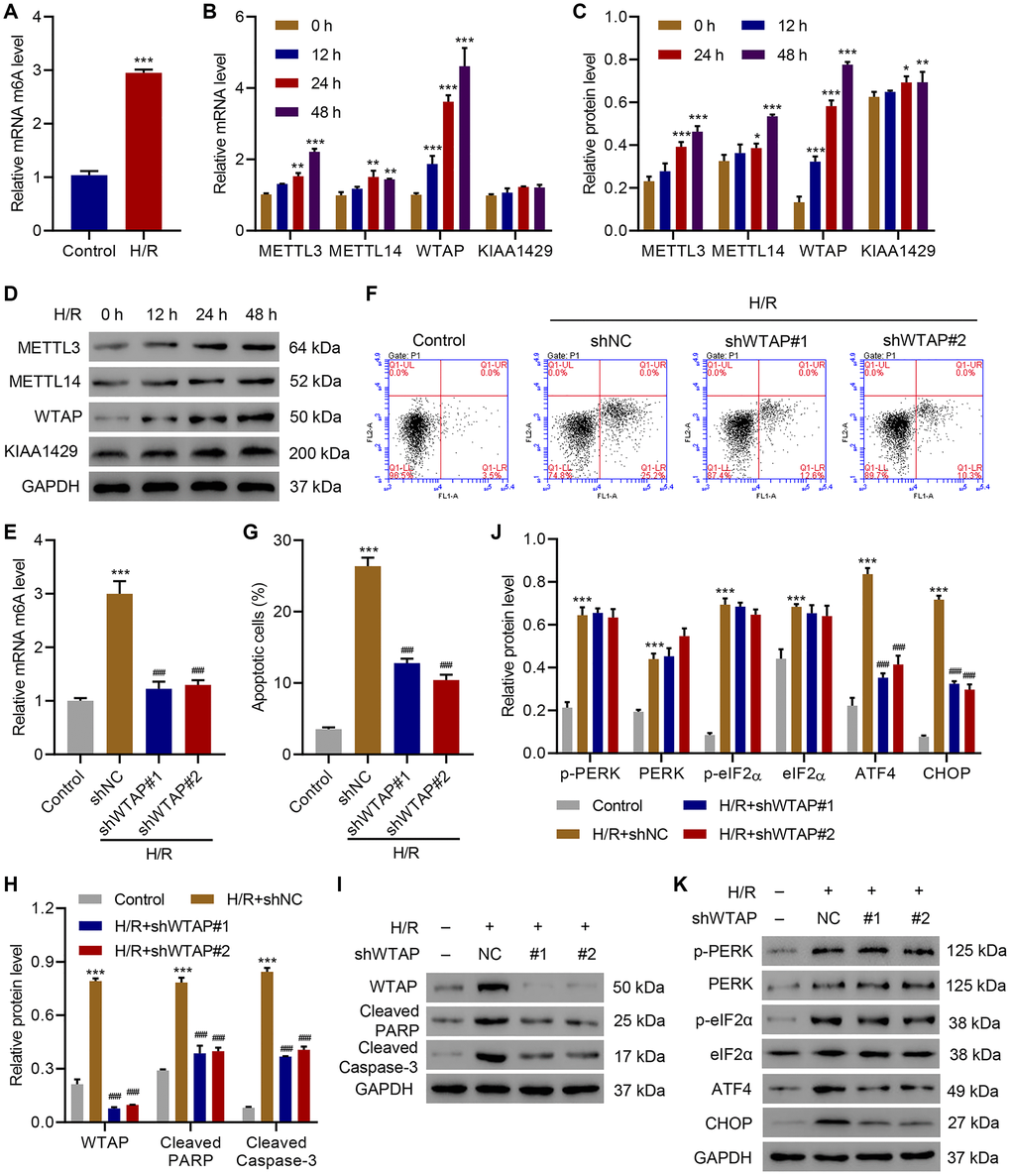 The present study demonstrated that knockdown of WTAP significantly inhibited H/R-induced injury. In contrast, overexpression of WTAP significantly increased apoptosis and ER stress, which were ameliorated by administration of 4-PBA. In terms of molecular mechanism, we showed that WTAP knockdown protected cardiomyocytes against apoptosis and ER stress through down-regulating the mRNA stability of ATF4. This study also indicated that ATF4 could bind to the promoter region of WTAP to regulate its transcription. Finally, using animal models, we demonstrated that knockdown of WTAP significantly reduced H/R-induced injury in vivo.