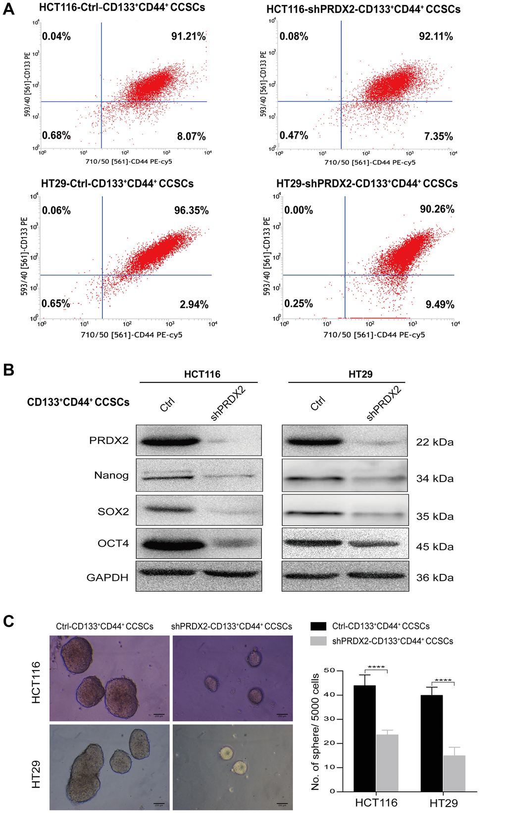 PRDX2 silencing in CD133+CD44+ CCSCs
