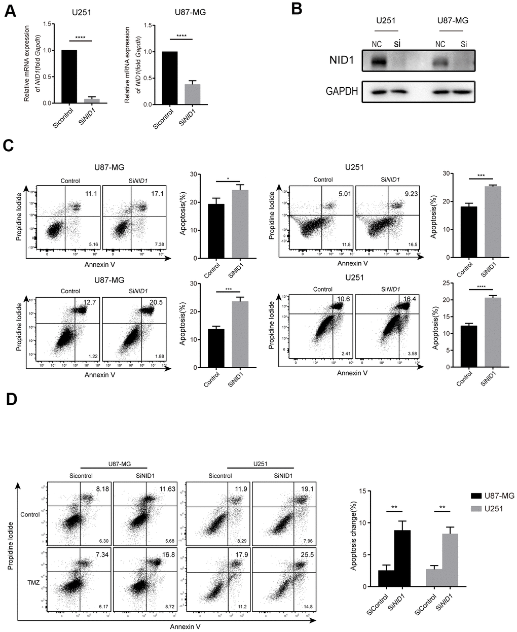 Silencing of NID1 promotes apoptosis and TMZ sensitivity of U87-MG and U251 glioma cells