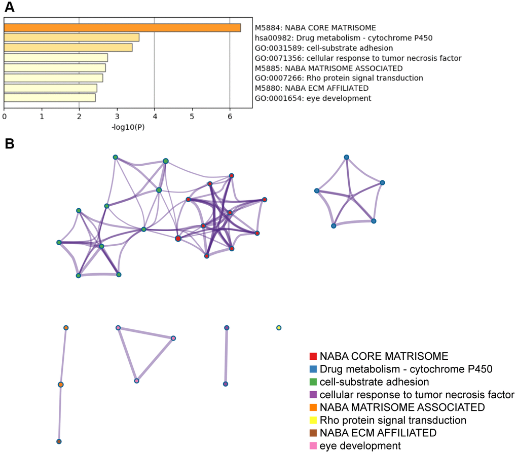 Metascape (http://metascape.org) is a web-based portal that combines functional enrichment, interactome analysis, gene annotation, and membership search from over 40 independent knowledge-bases into a single integrated portal [77]. We performed Gene Ontology (GO) and Kyoto Encyclopedia of Genes and Genomes (KEGG) pathway analyses using this portal to comprehensively annotate a list of 100 NID1-related genes.