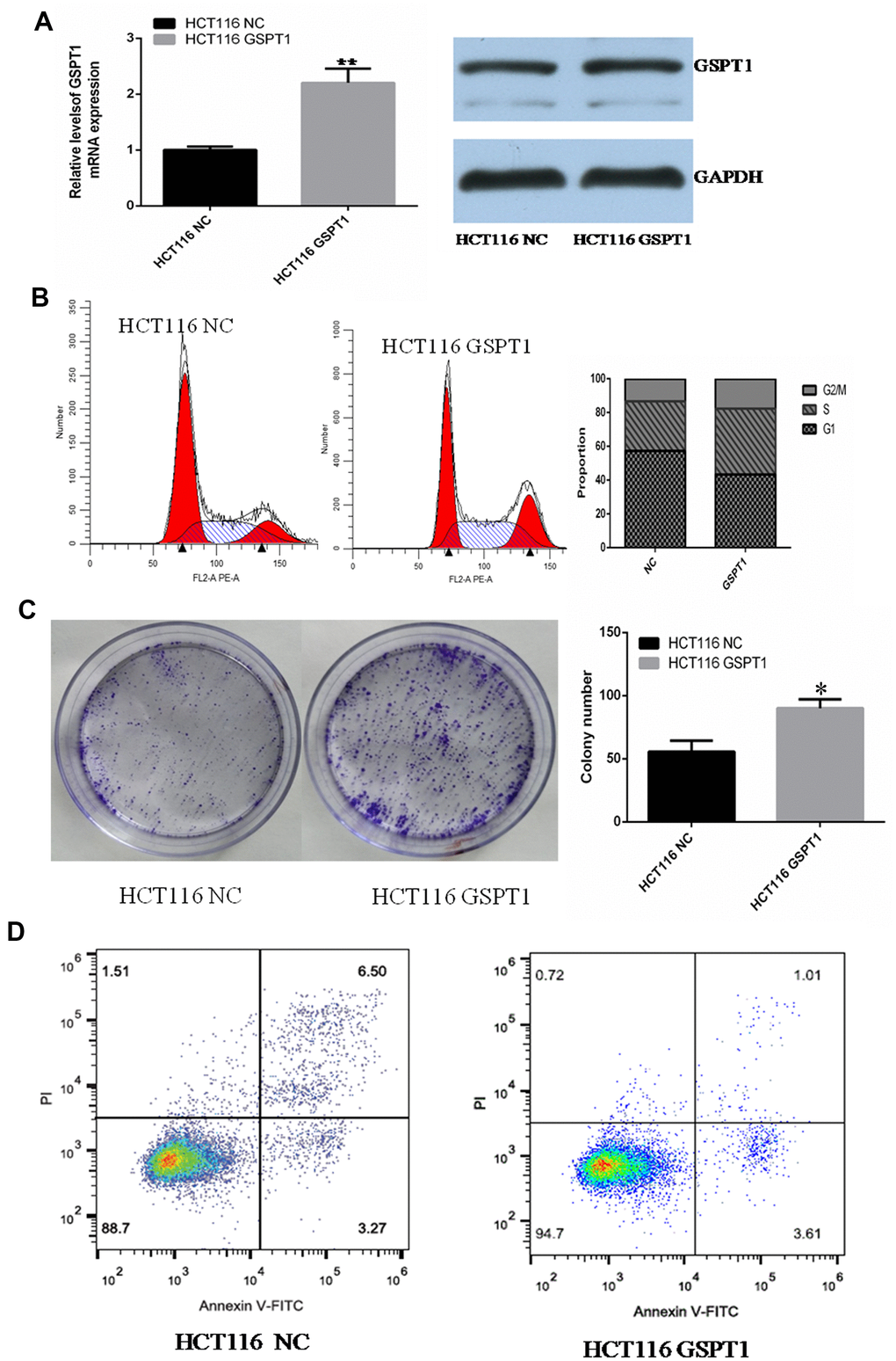 Over-expression of GSPT1 promotes the HCT-116 cell cycle and colony formation and inhibits cell apoptosis
