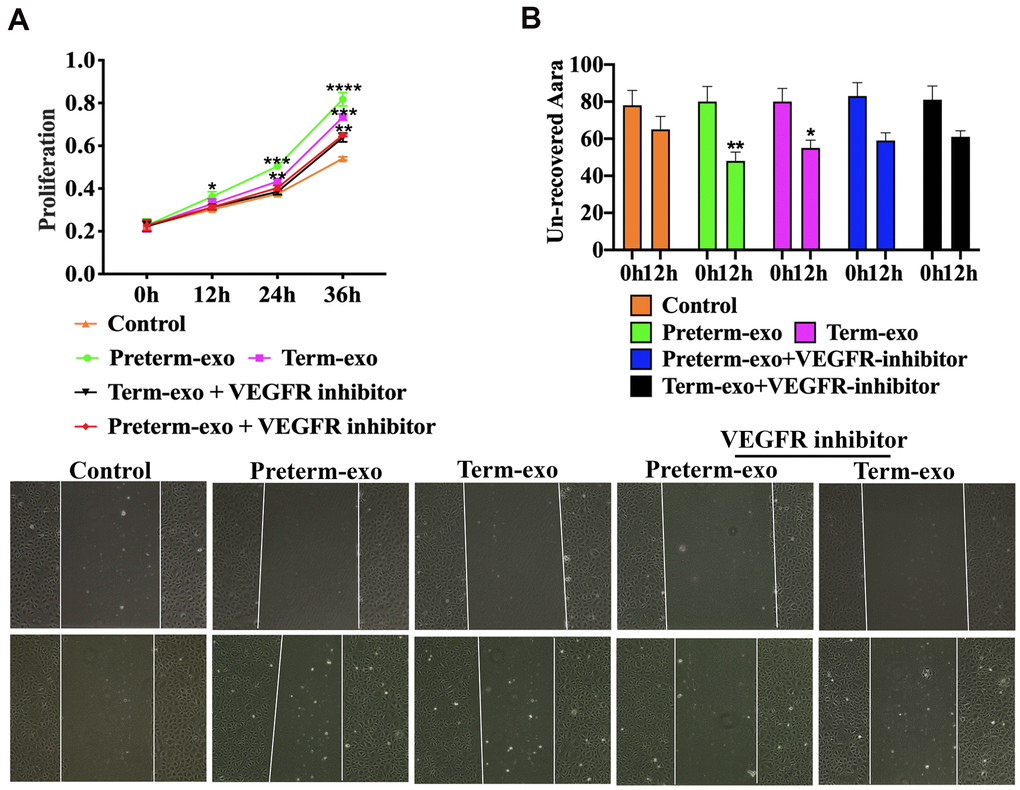 VEGFR inhibition blocked the proliferation and migration of FHC cells induced by PC and TC exosomes