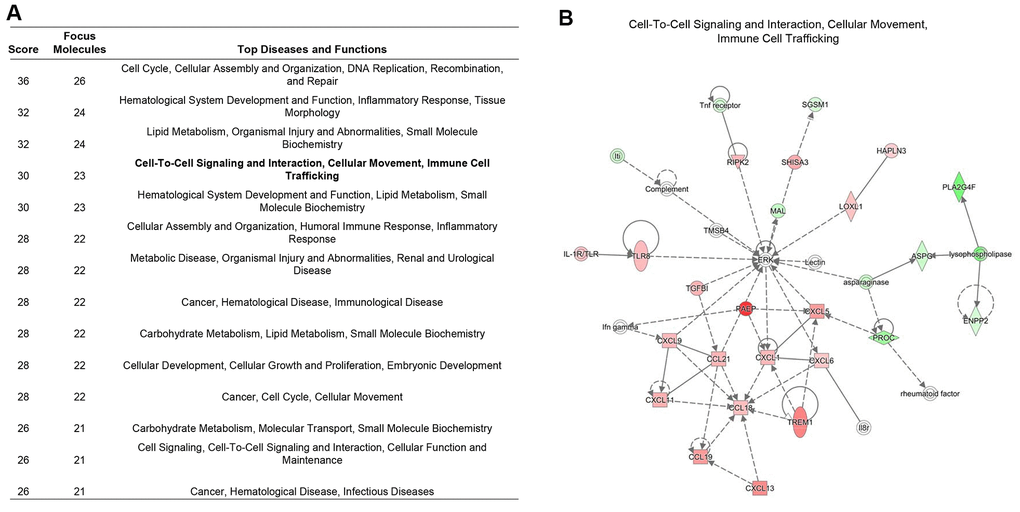 The Ingenuity Pathway Analysis (IPA) software was used for pathway enrichment and signaling network analysis in this work. The significantly up-regulated gene expression profile (with fold-change and P-value) based on DEG analysis was employed for the IPA software as the input gene list. Then the two functional models (1, Canonical Pathways, and 2, Signaling Network Analysis) of IPA software were run with default parameters.