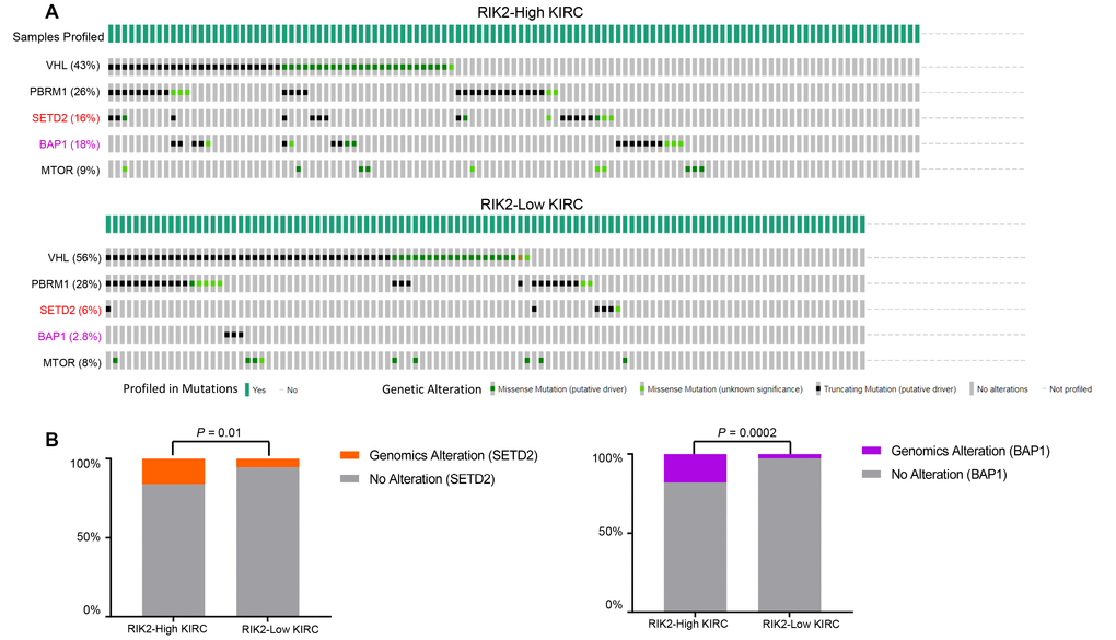 RIPK2 upregulation samples exhibit a selective increase of SETD2 and BAP1 genomic alterations