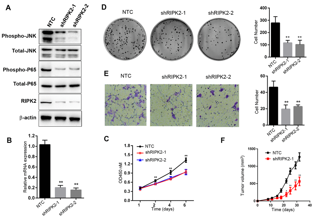 Inhibition of RIPK2 activity suppressed cell proliferation in vitro and in vivo