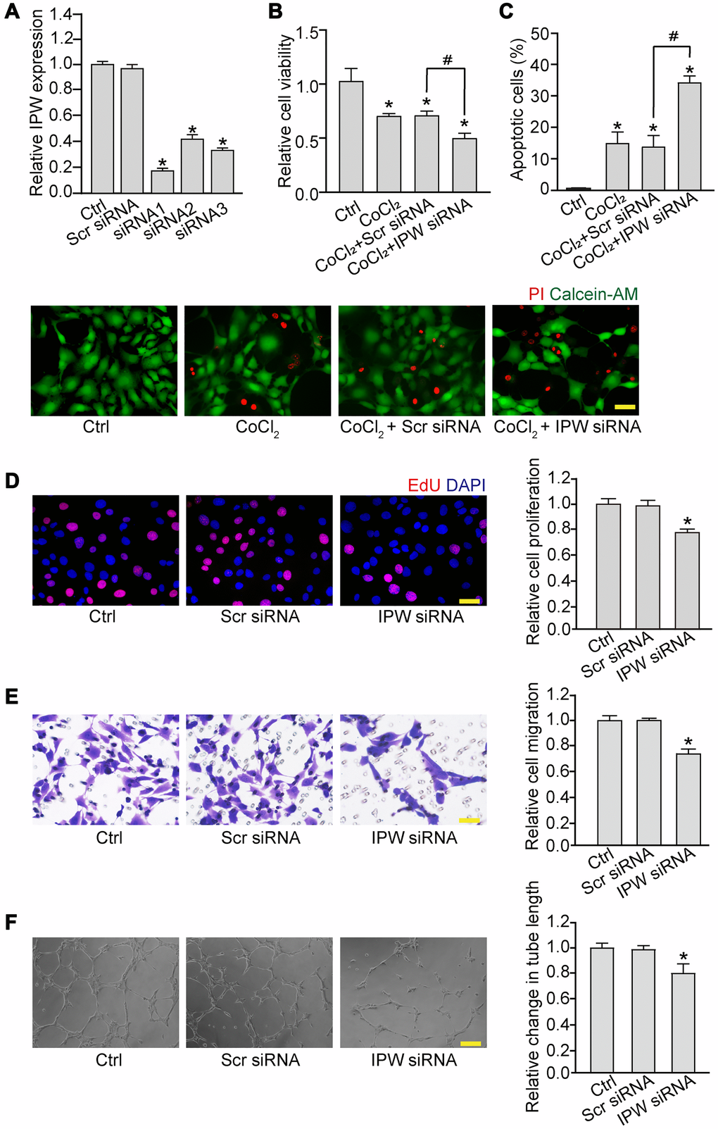 Silencing of lncRNA-IPW reduces endothelial angiogenic function in vitro