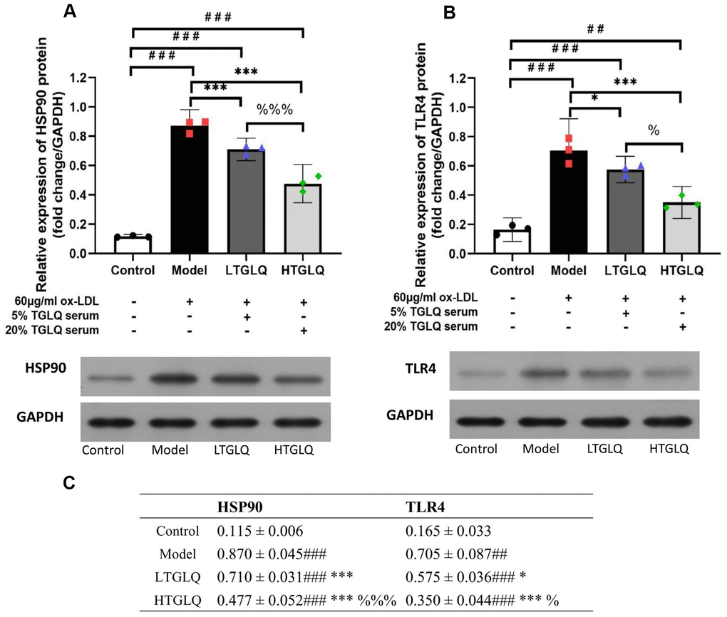 TGLQ inhibited protein expression of HSP90 and TLR4 in ox-LDL induced macrophages