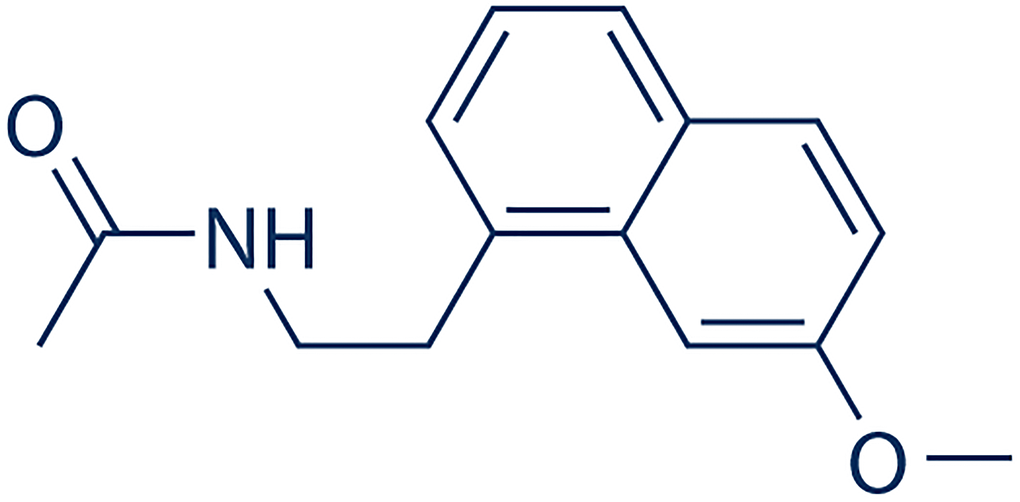- 20. Depreux P, Lesieur D, Mansour HA, Morgan P, Howell HE, Renard P, Caignard DH, Pfeiffer B, Delagrange P, Guardiola B, Yous S, Demarque A, Adam G, et al. Synthesis and structure-activity relationships of novel naphthalenic and bioisosteric related amidic derivatives as melatonin receptor ligands. J Med Chem. 1994; 37:3231–39. https://doi.org/10.1021/jm00046a006 [PubMed]