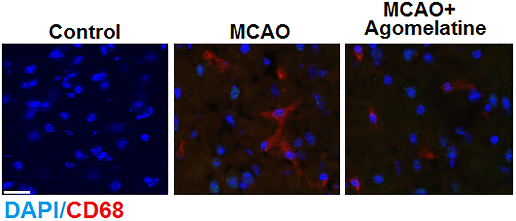 Agomelatine inhibited macrophage infiltration in the cortex of the MCAO mouse model