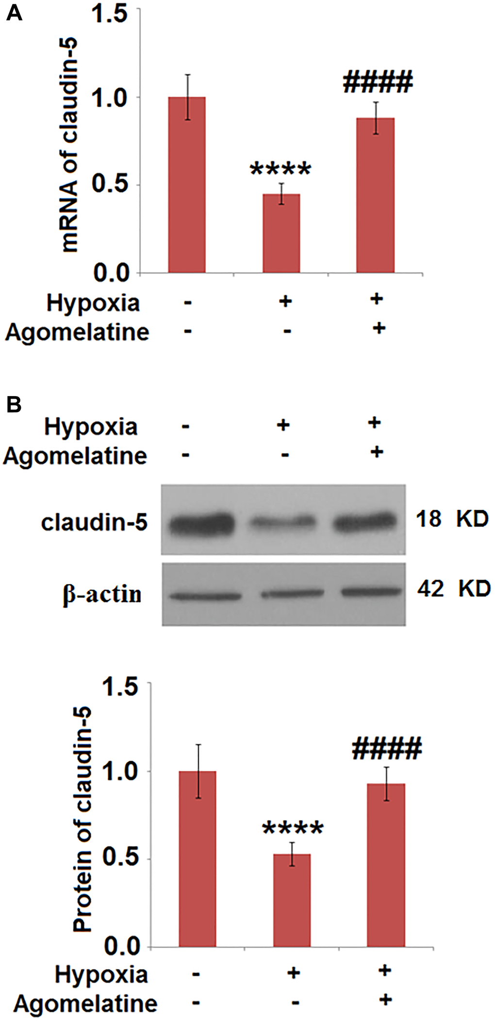 The expression level of claudin-5 was up-regulated by Agomelatine in hypoxic endothelial cells