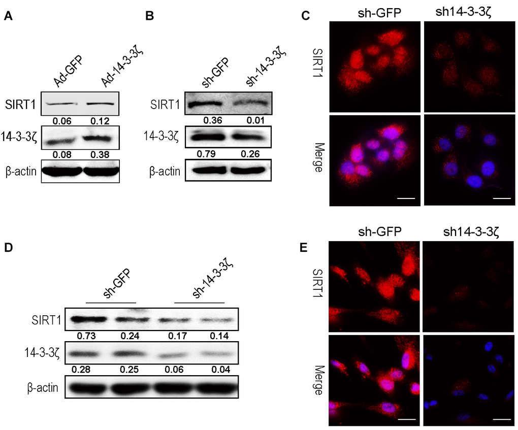 Overexpression or knockdown of 14-3-3ζ protein affects SIRT1 expression