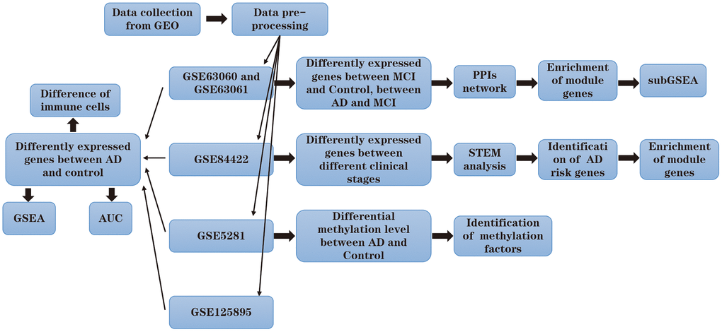 The results of the present study enriched our understanding of the molecular mechanism of genetic changes in the process of AD development and deterioration. The genes found in the present study can be used as targets for further functional studies to further elucidate their diagnostic and therapeutic roles in AD.
